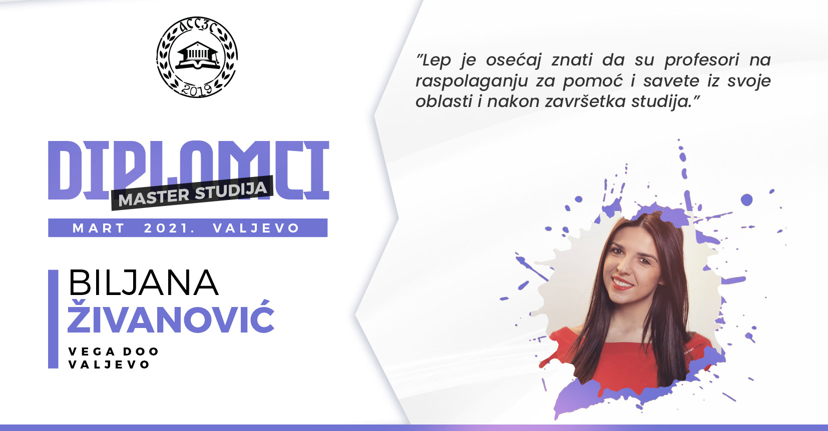 Budućim studentima bih poručila da ništa nije nemoguće. Najbitniji su volja, želja, upornost i trud, a vremenom će sve doći na svoje mesto.