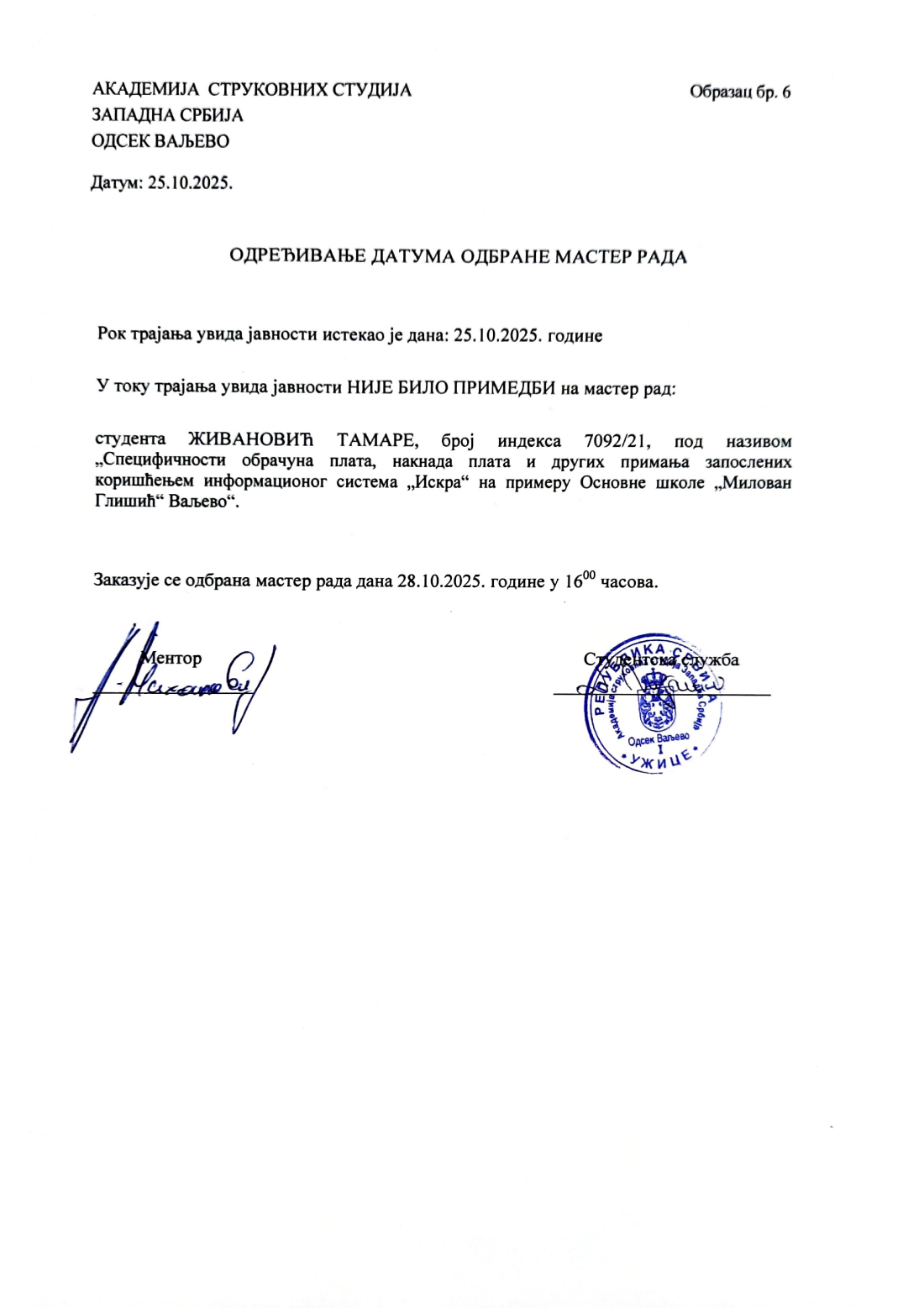 - Obaveštenja za studente